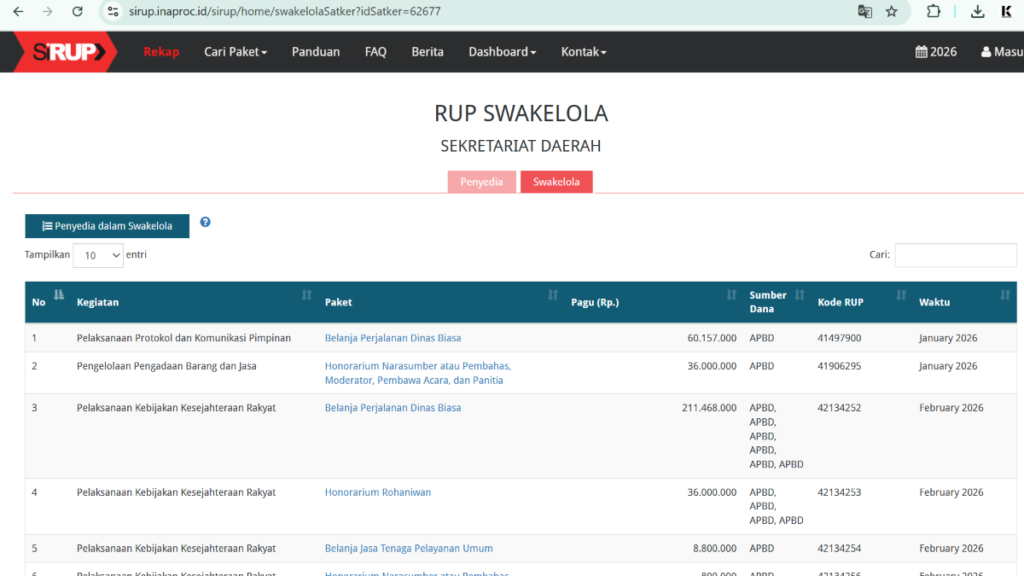 Data RUP merupakan dokumen resmi perencanaan pengadaan. Pemerintah daerah memublikasikannya secara mandiri melalui sistem LKPP.